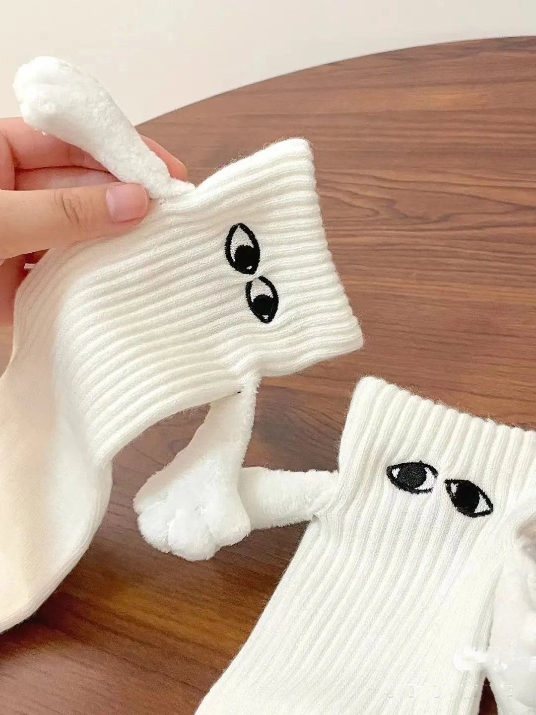 Connect in a fun and whimsical way with magnetic hands that join when standing side by side. Cute eye designs add character and playfulness. Let your socks reflect the joy and happiness you share with your loved one!