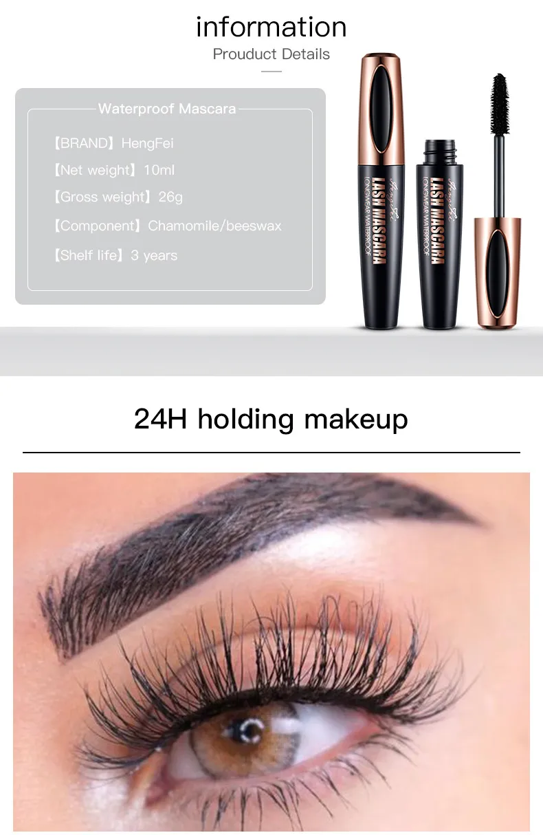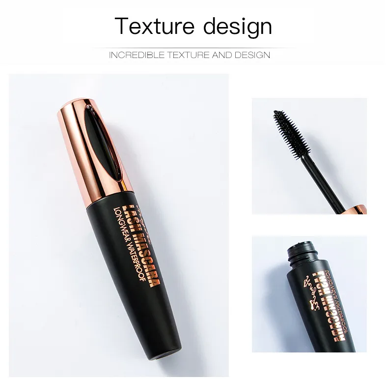 The mascara is thick, long, curled, waterproof and sweat-proof