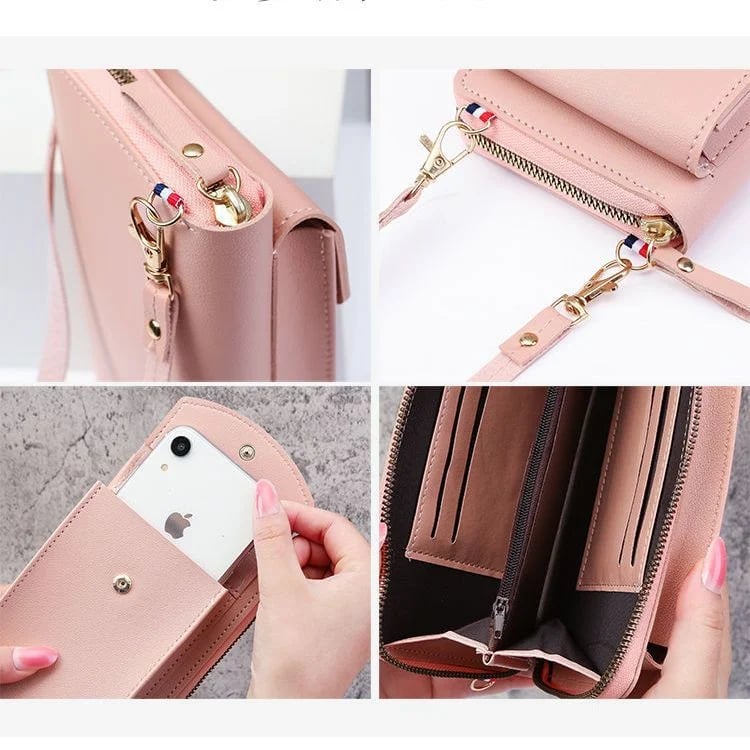 It has room for your cards, cash, glasses, keys, passport and much more. It also has an external pocket with a convenient push-button, to safely store your mobile phone.