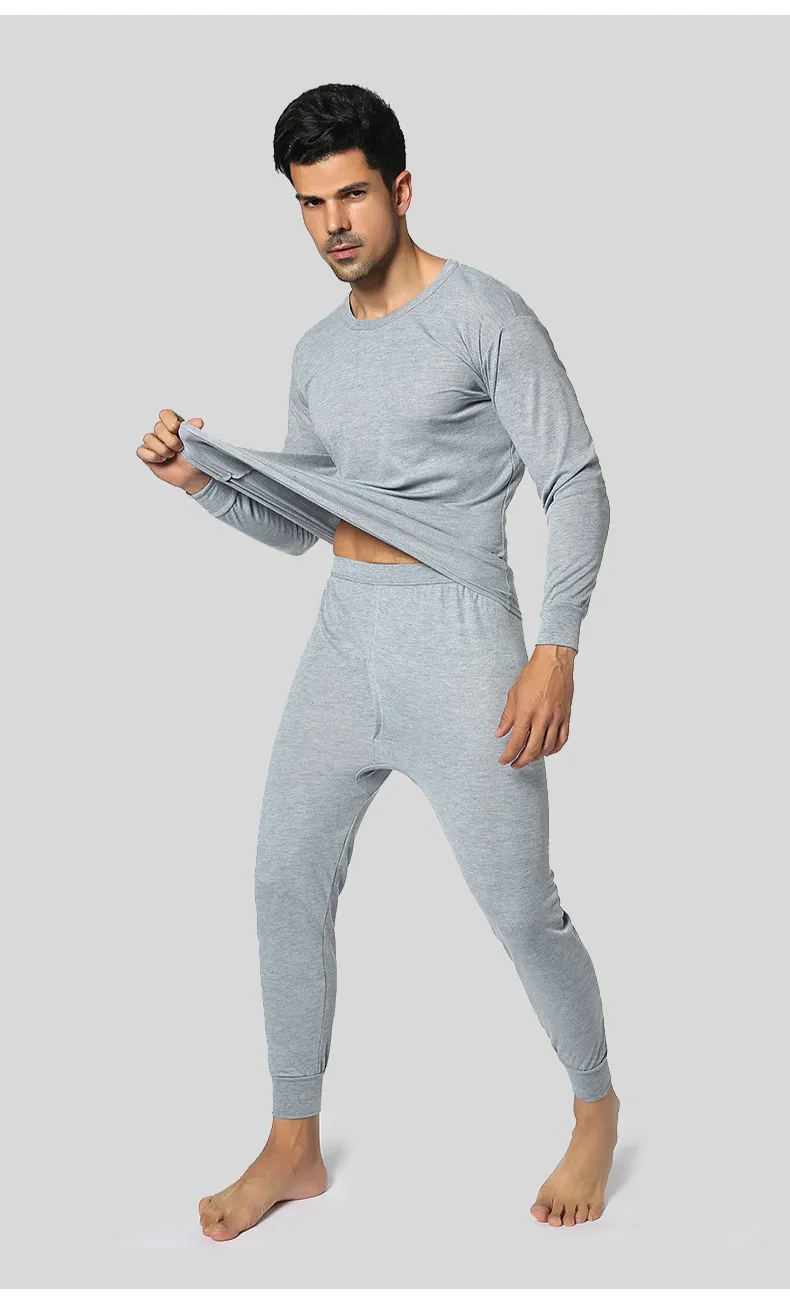 Men's Thermal Underwear Set – Round Neck Polyester Base Layer for Autumn & Winter