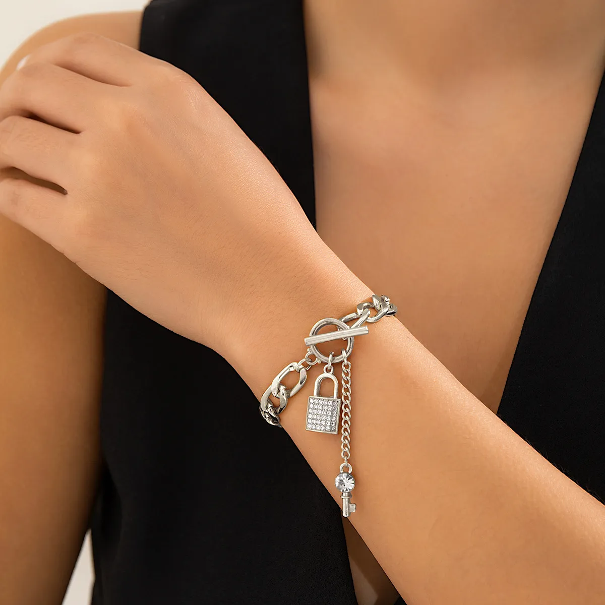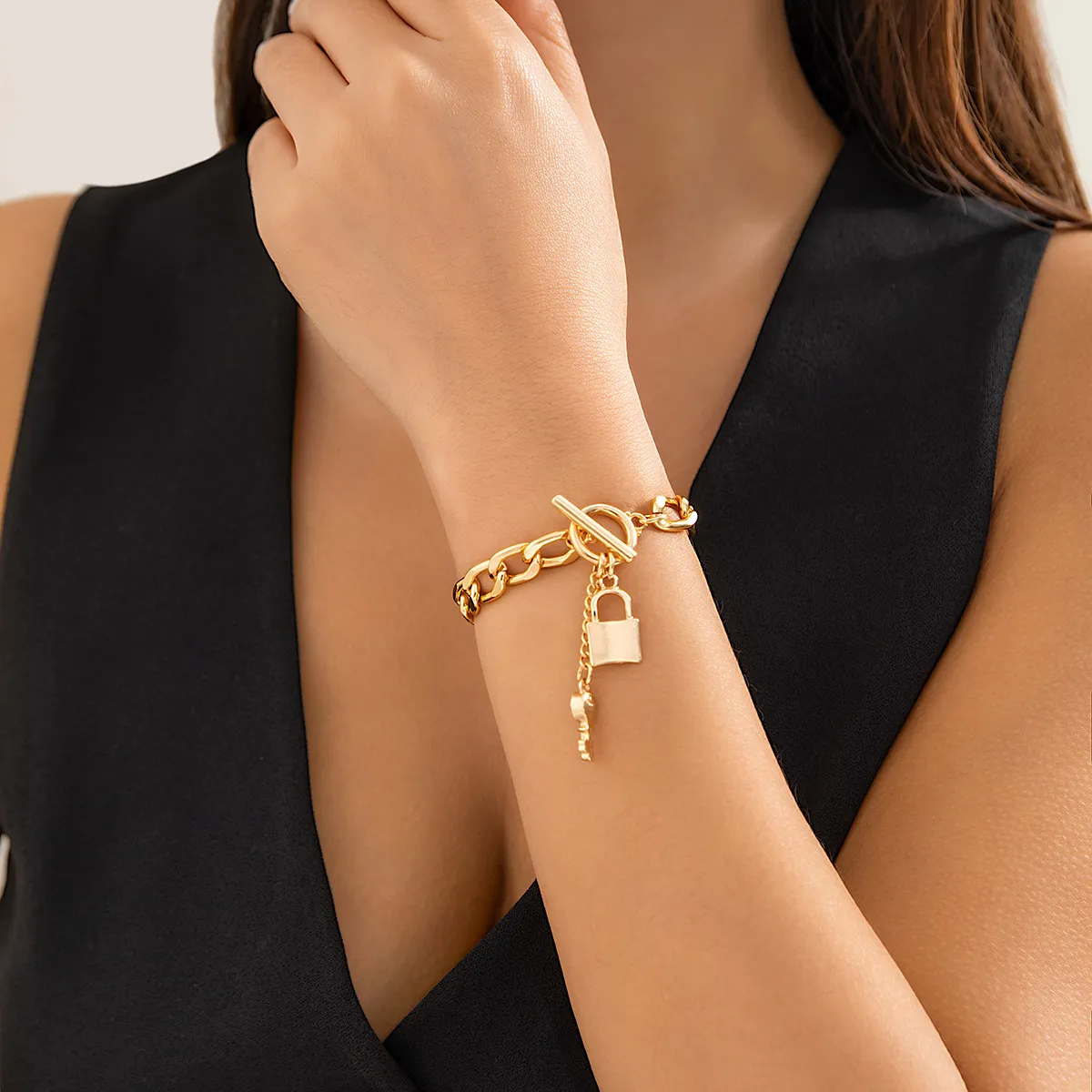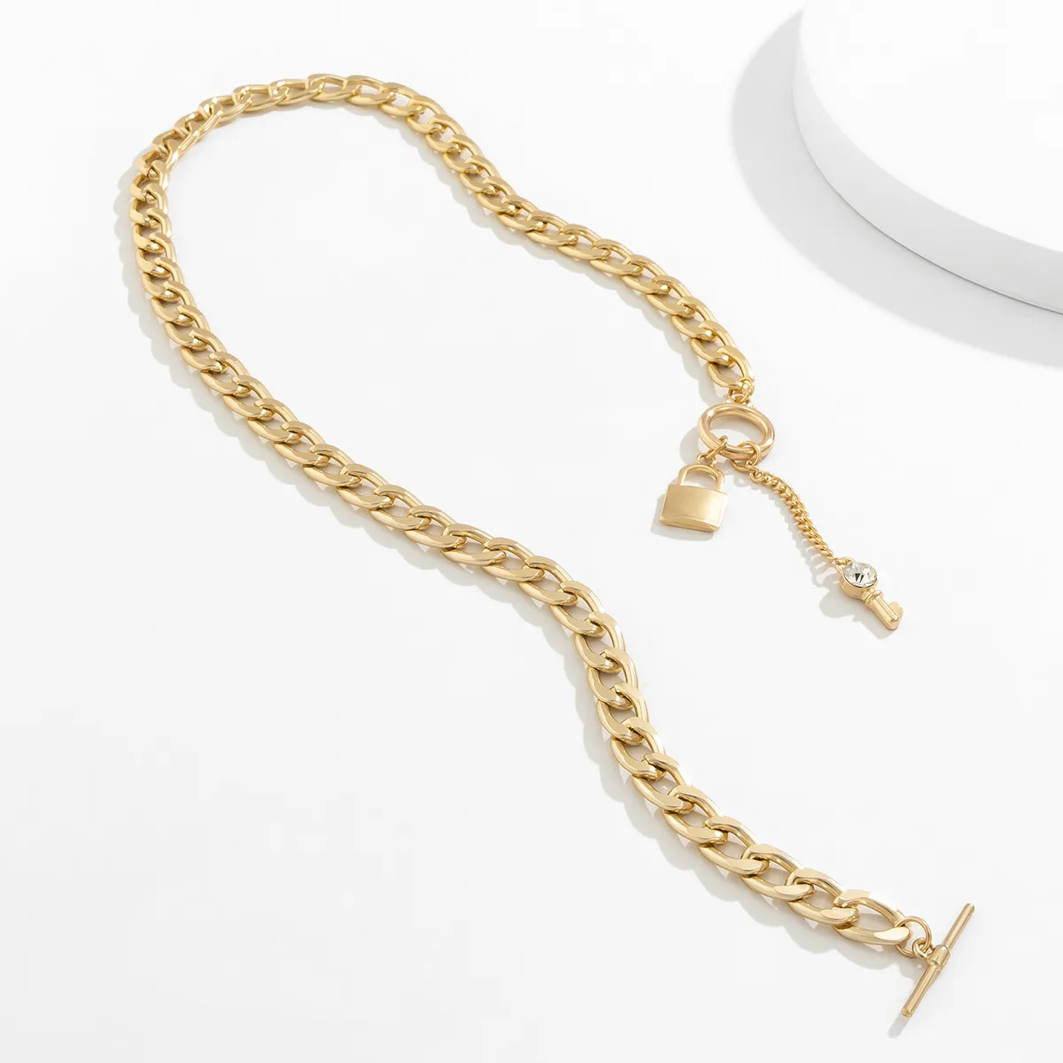 Thick Chain With Shiny Lock And Key Pendant Necklace For Women
