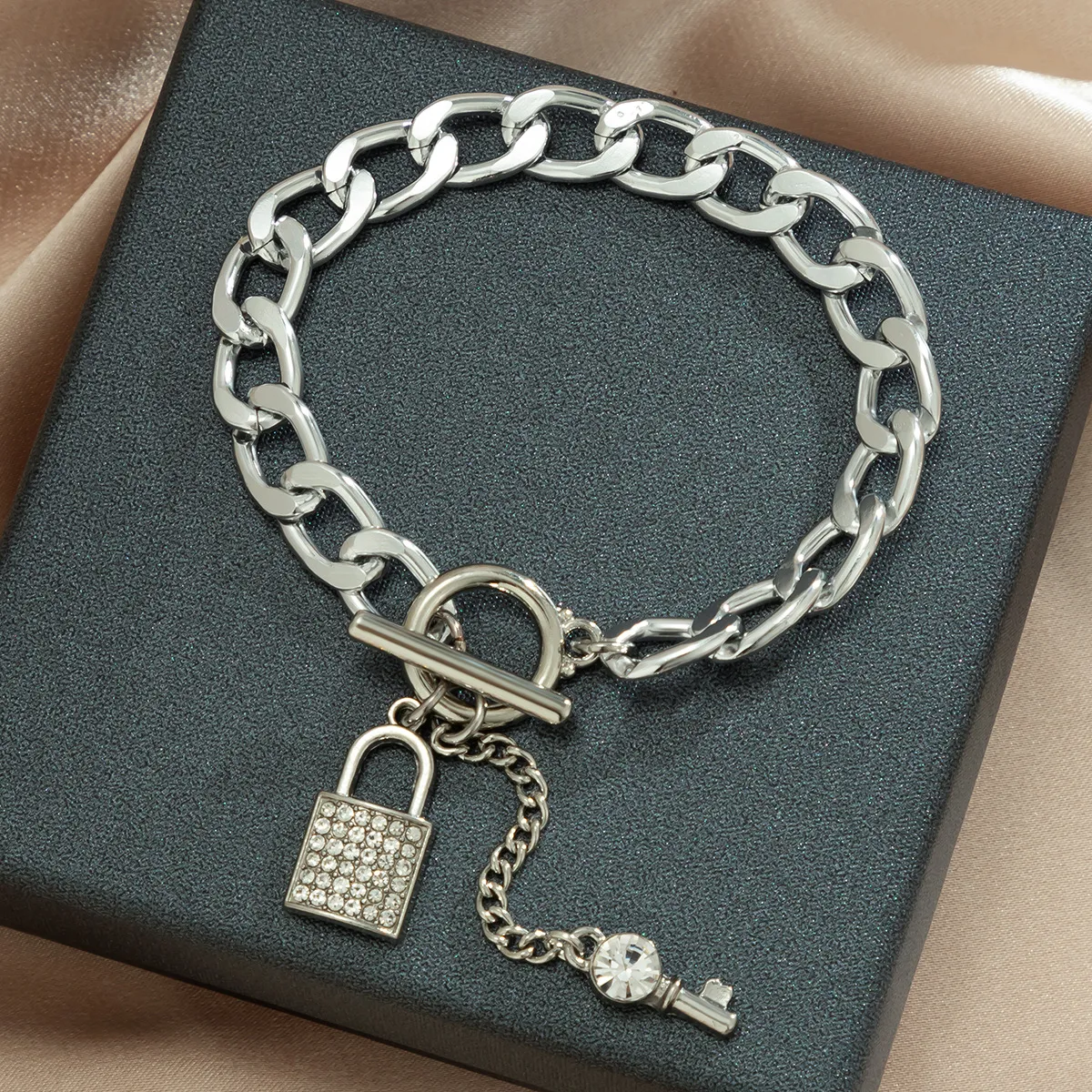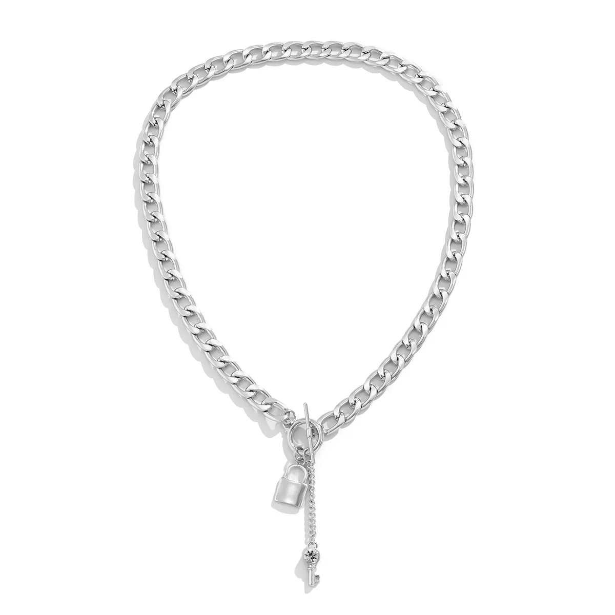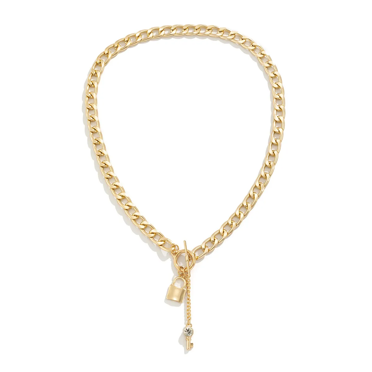 Elevate your style with this trendy thick chain necklace featuring a shiny lock and key pendant. Designed for women, this