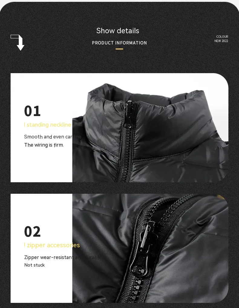 Every detail of the Thickened Stand Collar Goose Down Liner Coat is thoughtfully designed for maximum style and functionality. The stand