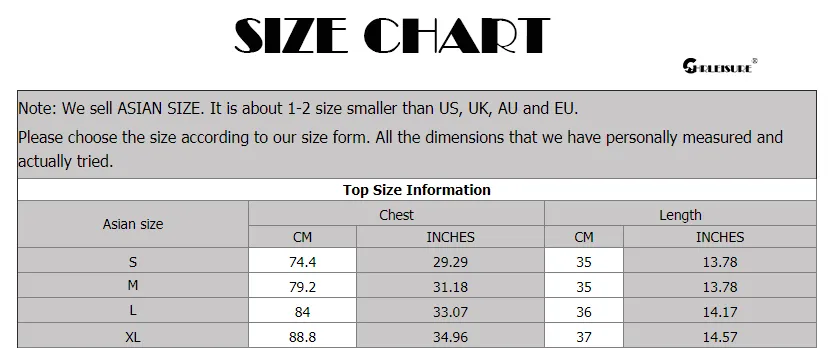 1. Asian sizes are 1 to 2 sizes smaller than European and American people. Choose the larger size if your size between two sizes. Please