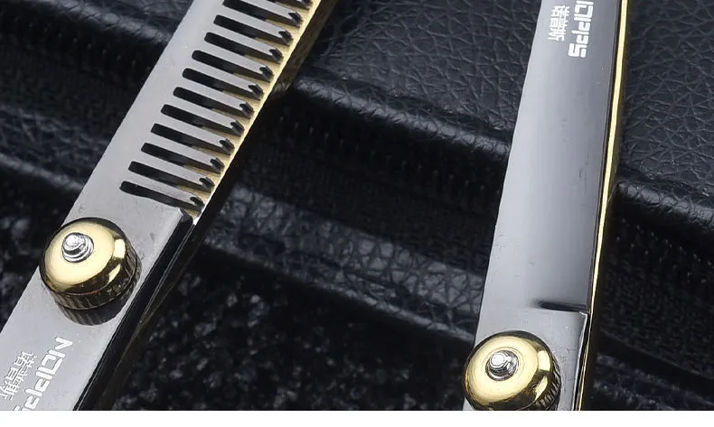Made from durable stainless steel, these thinning scissors are designed for long-lasting performance. The sharp, flat teeth work effectively on all hair types, making them ideal for thinning out thick hair or adding texture to finer hair. The ergonomic handles provide comfort during use, reducing strain on your hands and fingers, even during extended styling sessions. Lightweight and easy to handle, they are a versatile addition to any hairstyling toolkit, giving you the flexibility to create a variety of looks, from subtle layers to more dramatic styles.