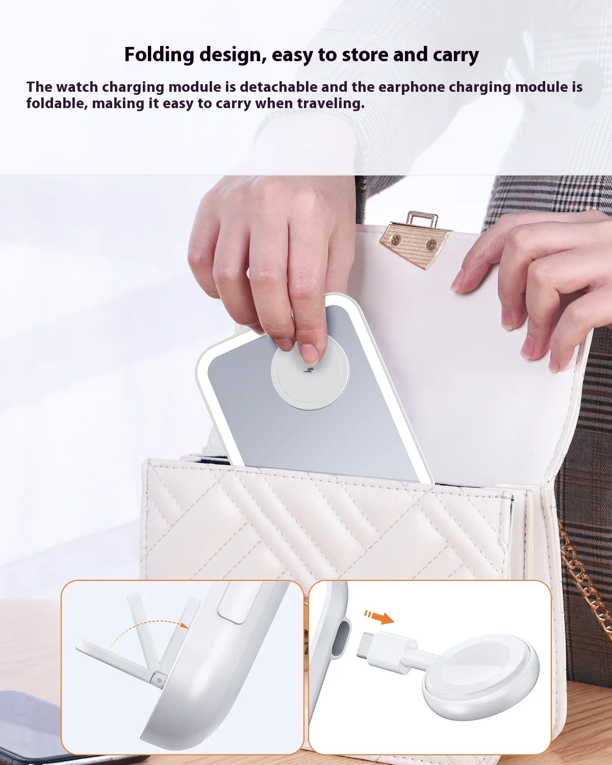 All-in-One Functionality: Combines wireless charging, LED makeup mirror, RGB