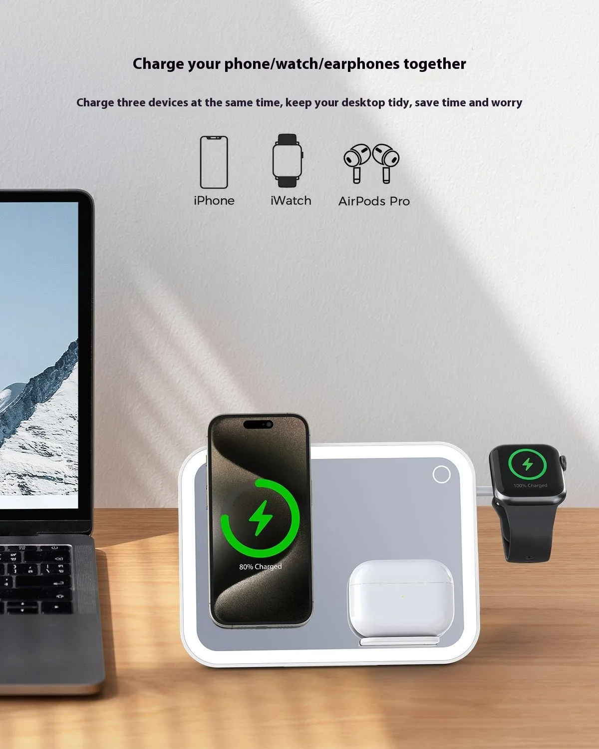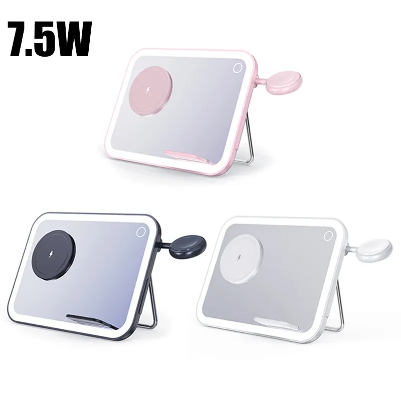 Why Choose the Three-in-1 Wireless Charger LED Makeup Mirror RGB Small Night Light Four-in-One Desk Lamp Charging Stainless Steel Holder?