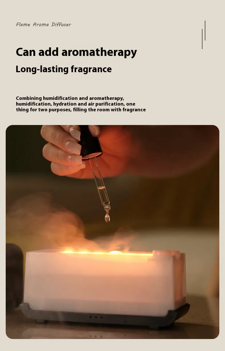 Perfect for homes, offices, meditation spaces, and spa settings, this stylish flame humidifier adds a touch of relaxation and warmth to any environment.
