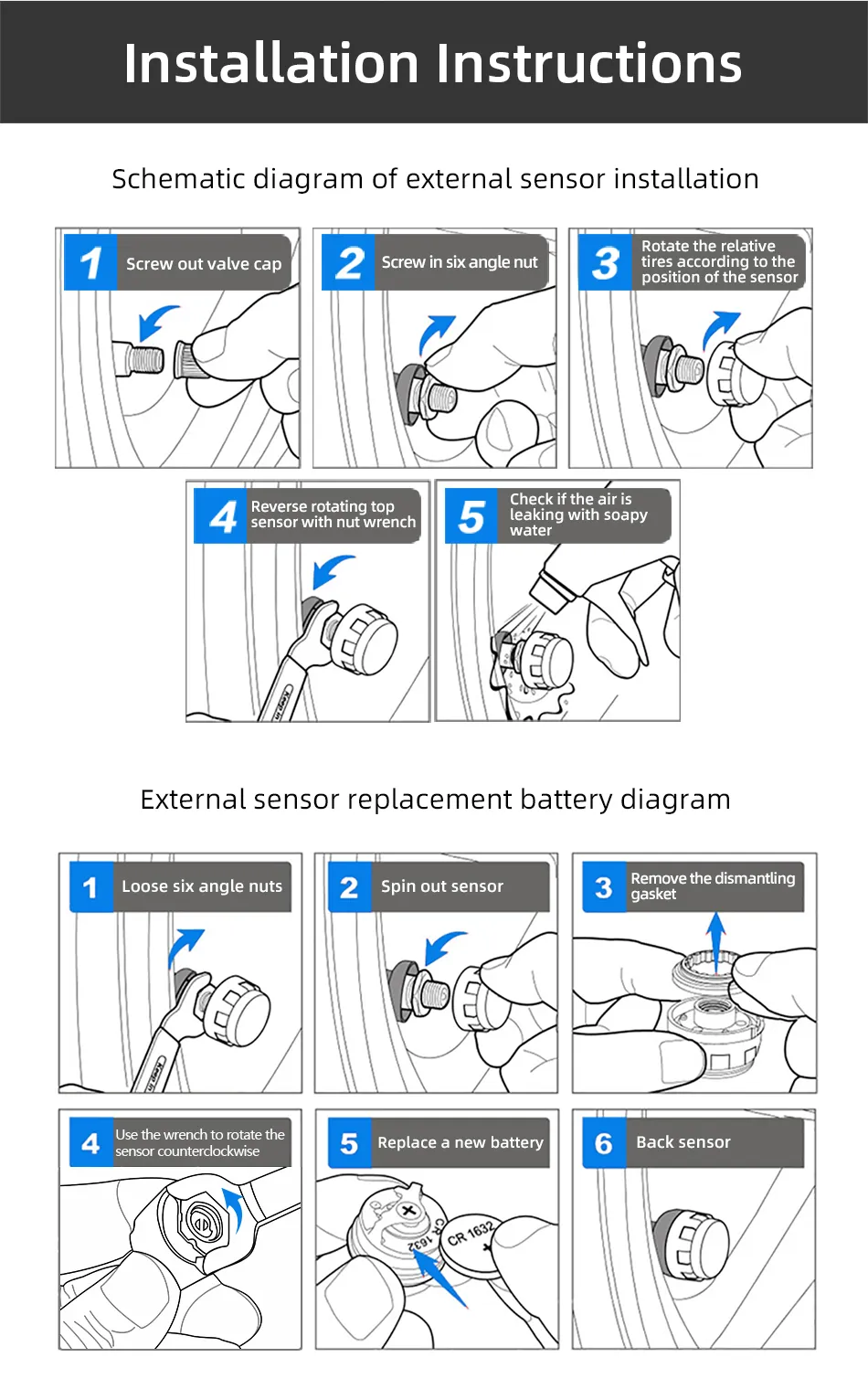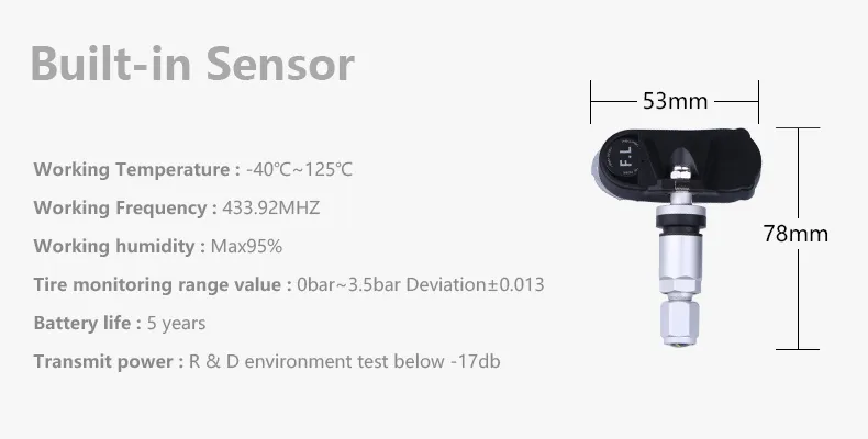 - Auto Security Alarm: Alerts you immediately when tire pressure is too low or high.