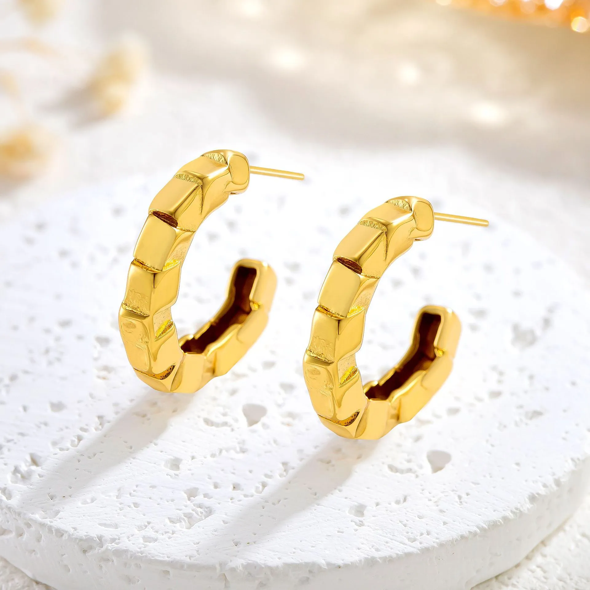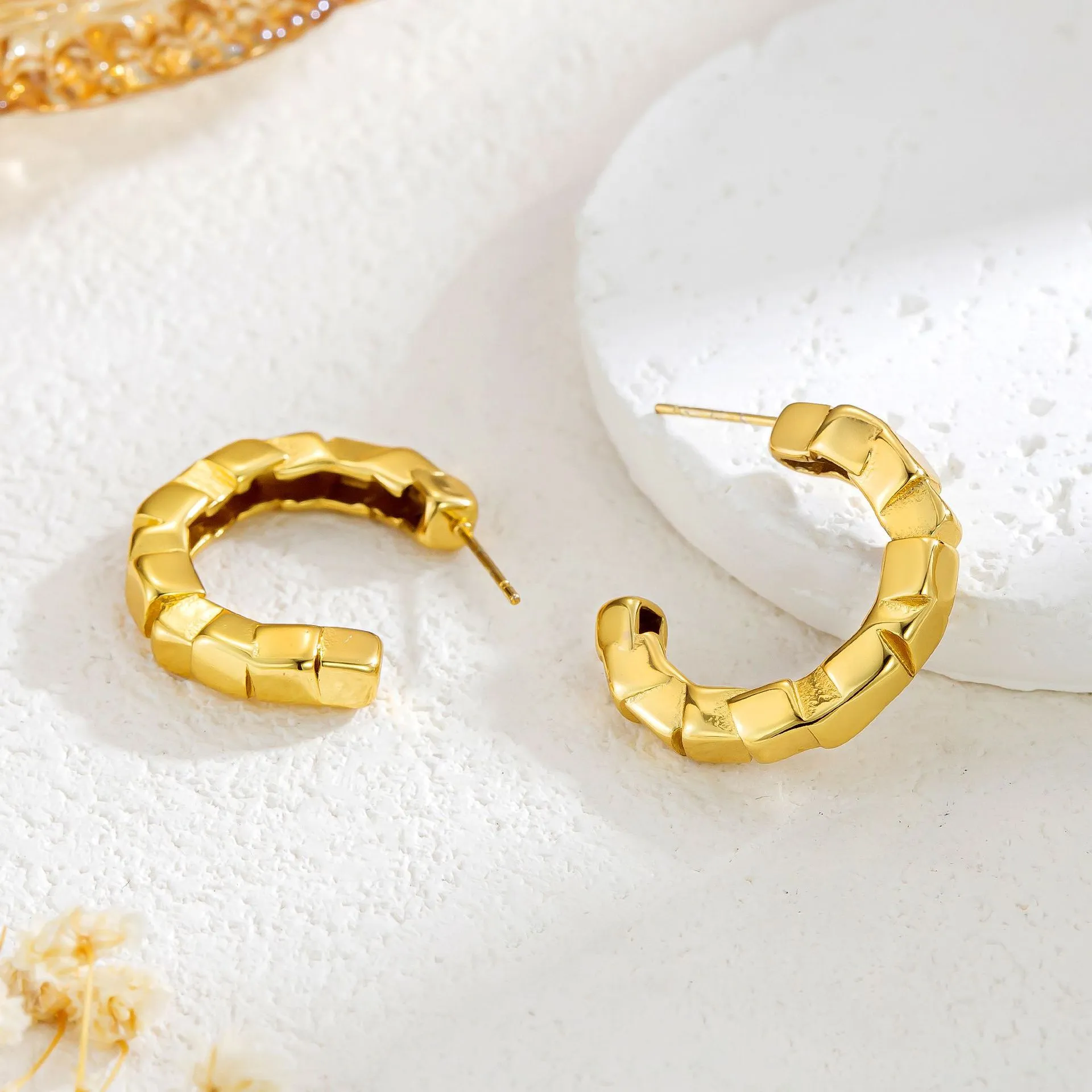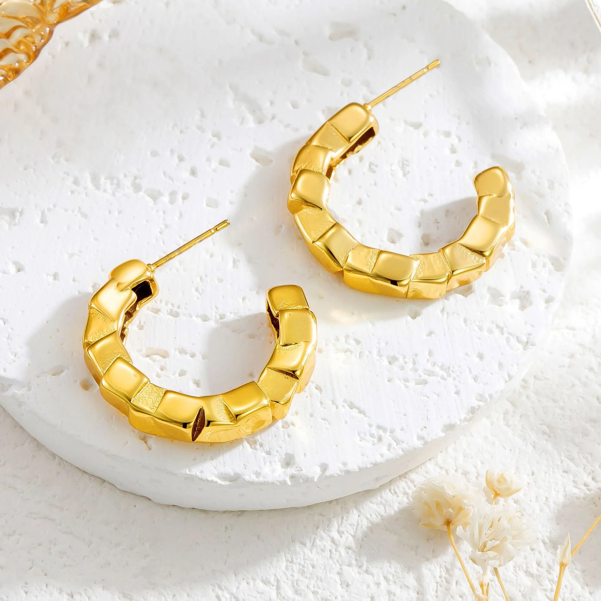 Titanium Steel Irregular Cube C- Shaped Earrings Fashion