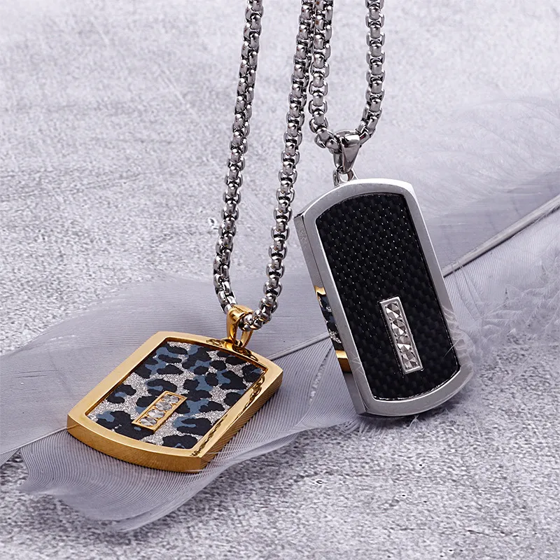 Titanium Steel Long Military Pendant Mesh Stainless Steel Diamond Pendant Necklace Accessories