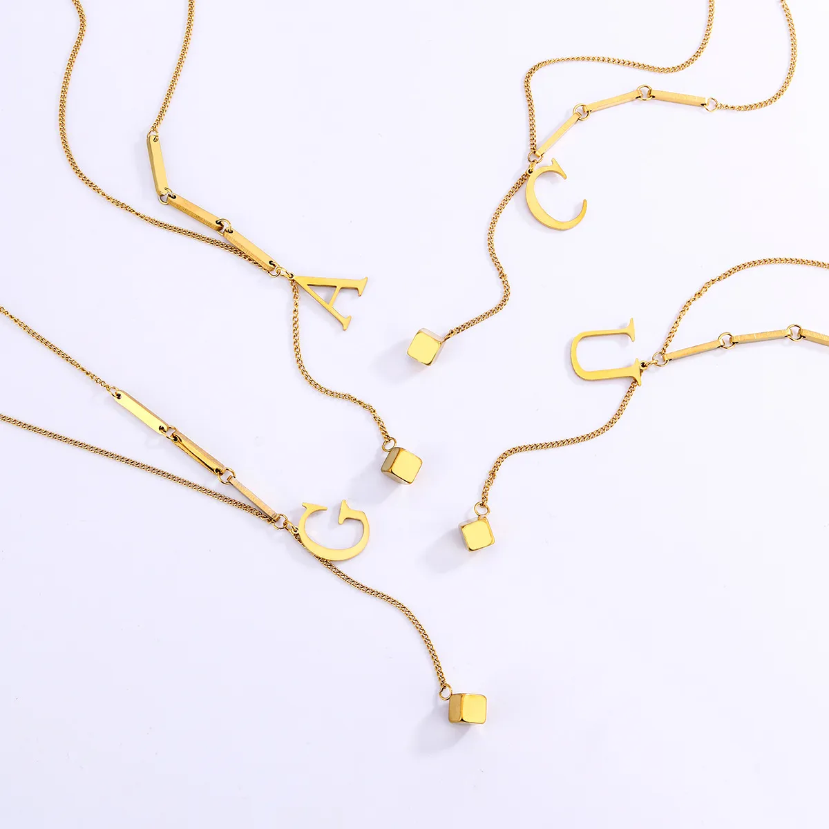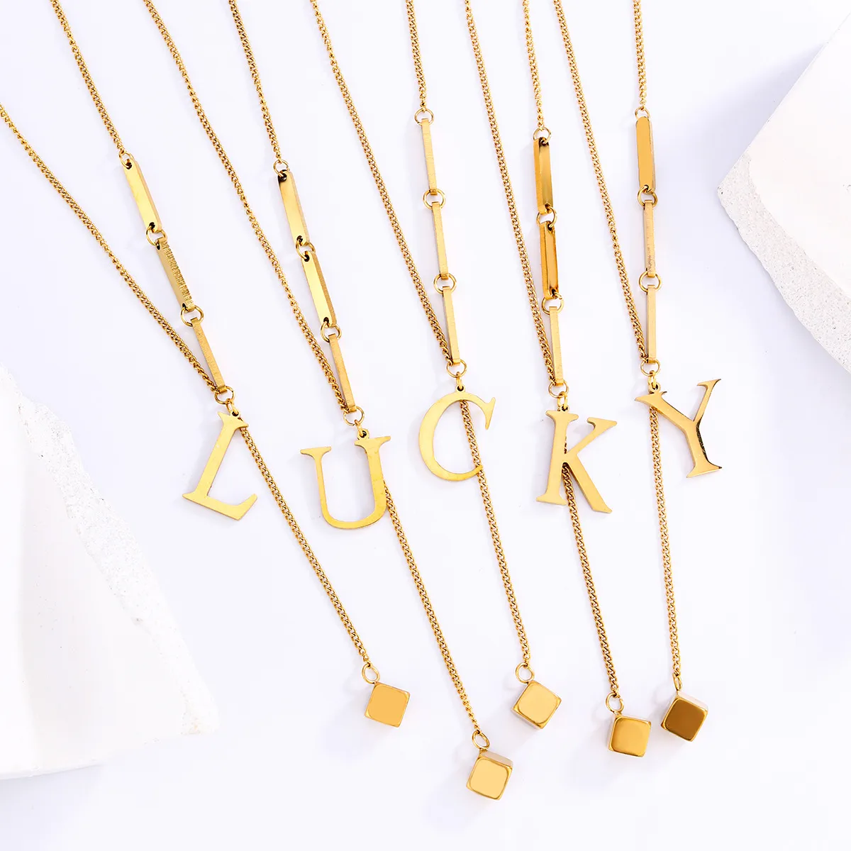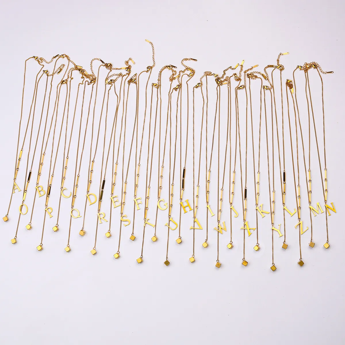 Titanium Steel Tassel 26 Letters Square Pendant Necklace