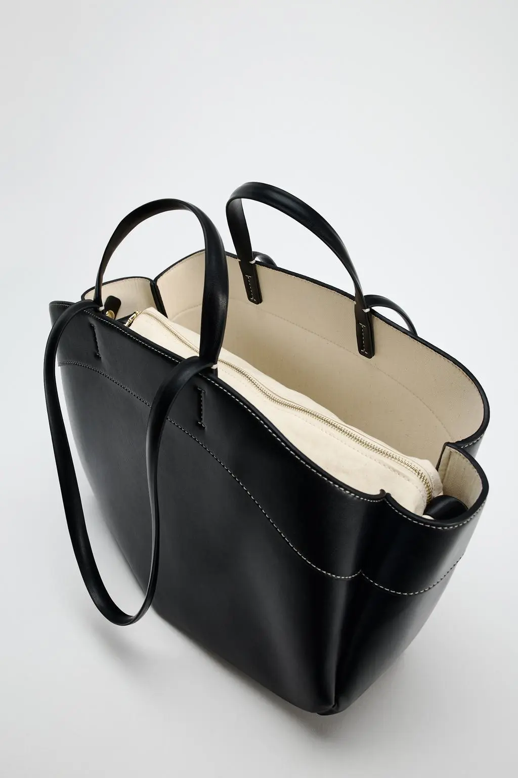 - Top handle for a classic tote look.