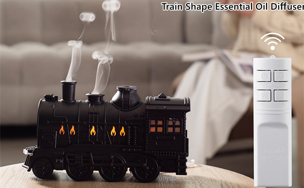 diffuser combines the functionality of an essential oil diffuser with the whimsical design of a steam engine train, making it a perfect