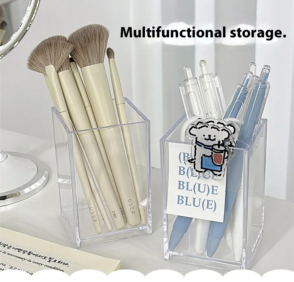 Transparent Acrylic Pen Holder – Multi-Purpose Desk Organizer for Office, Students & Makeup Brushes