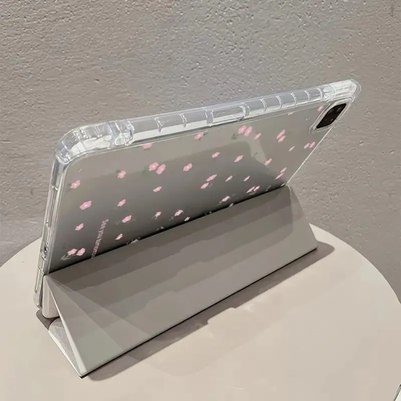 Transparent Floral Tri-fold Tablet Protective Case