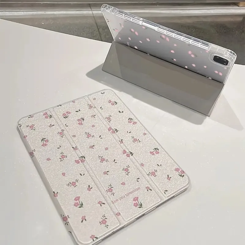 Transparent Floral Tri-fold Tablet Protective Case – Stylish and Durable Protection for Your Tablet