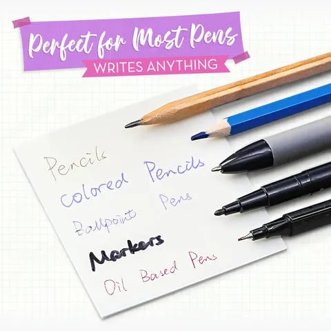 pencils, markers, highlighters, sharpies, oil-based markers, ball-point pens, colored pencils and more. Making it an ideal post-it notes for