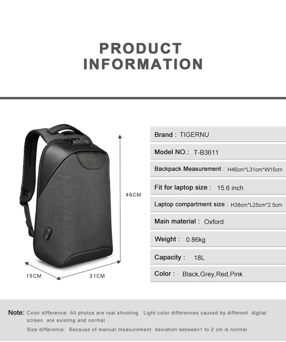 Fashion casual three-dimensional anti-theft backpack: strength anti-theft system, humanized storage design, ergonomic design, USB charging