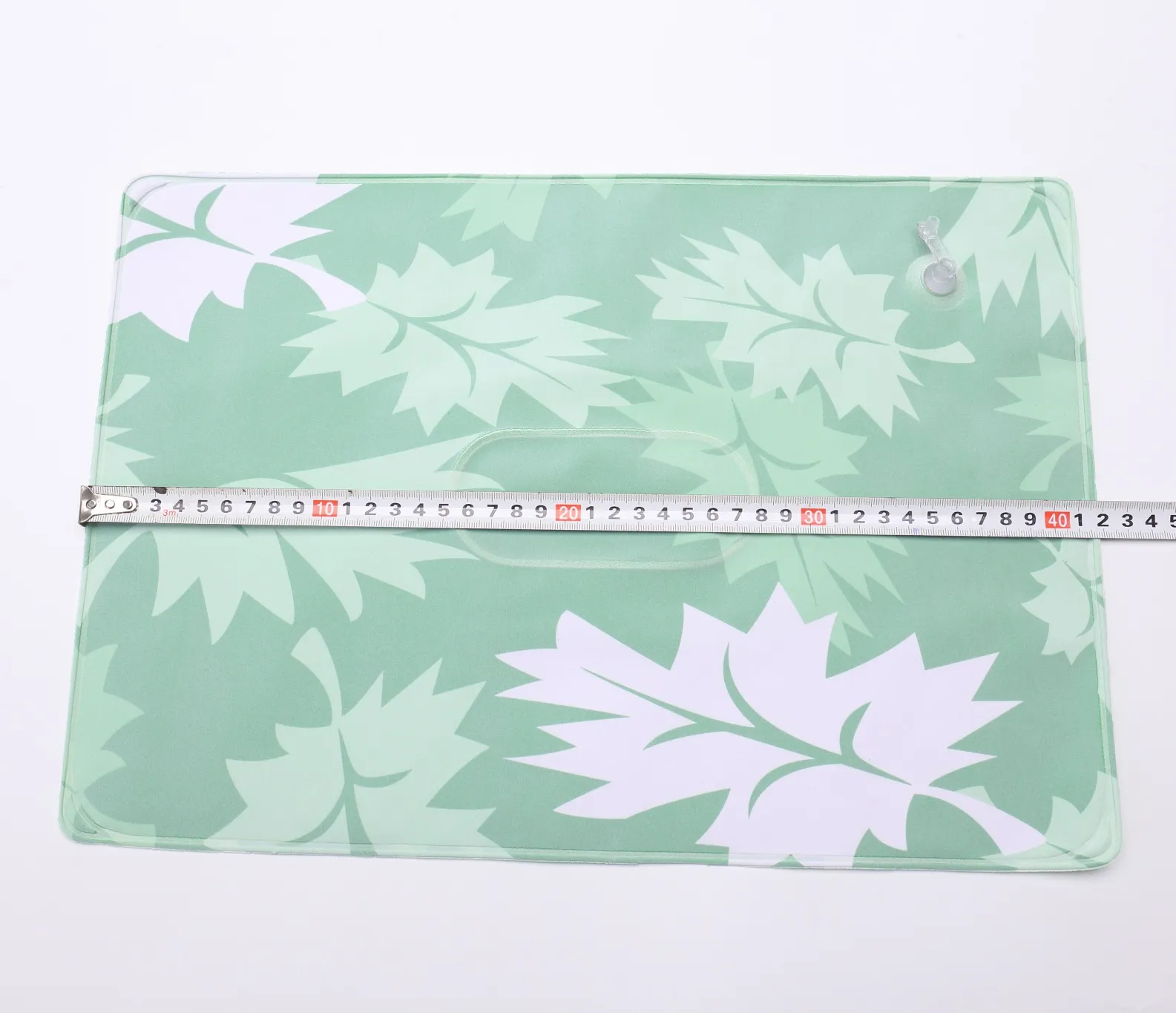 Color: dark blue, light gray, pink, sky blue, green maple leaf