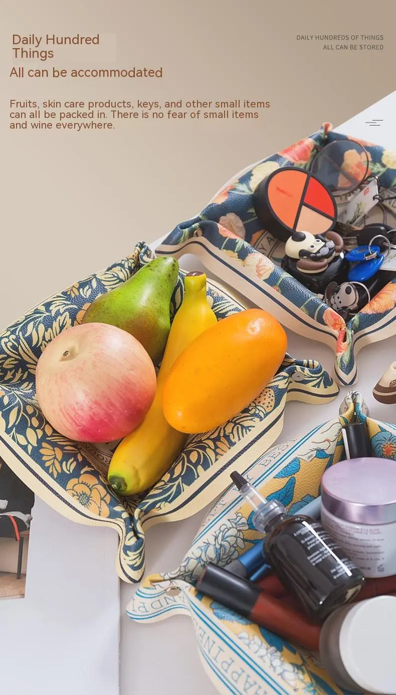 The PU Leather Tray Nut Snap Sundries Storage Box is perfect for organizing a variety of items. Whether you're storing fruit snacks in the kitchen, organizing office supplies on your desk, or keeping your personal items tidy in the bathroom, this tray provides a versatile solution to meet your storage needs. Its spacious design allows you to store everything from small accessories to household essentials, making it a must-have item for any home.