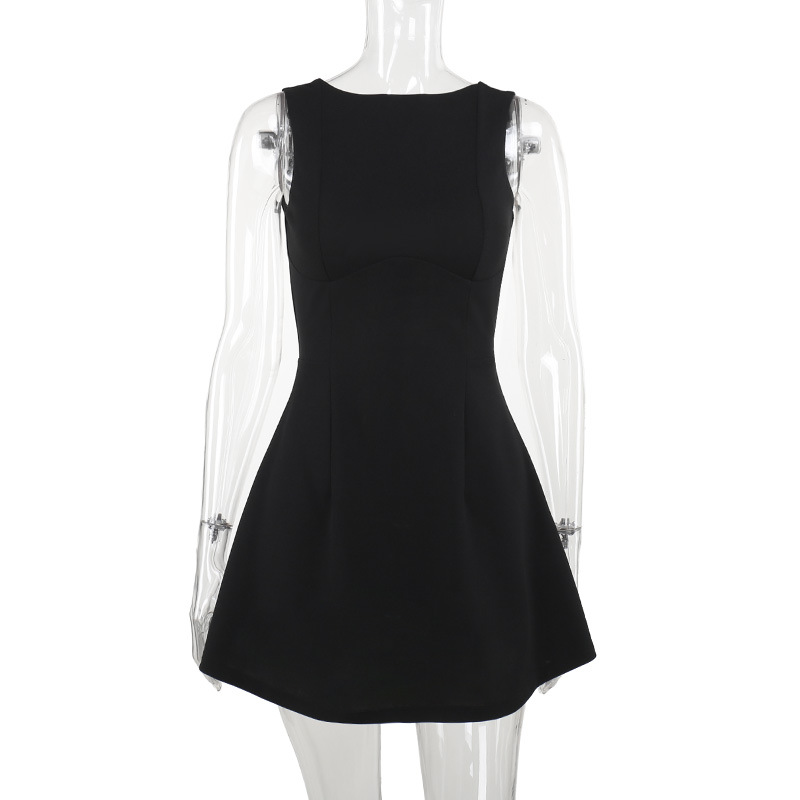 backless summer dress, sleeveless dress, trendy summer fashion, chic backless dress, slim summer dress, summer mini dress, stylish