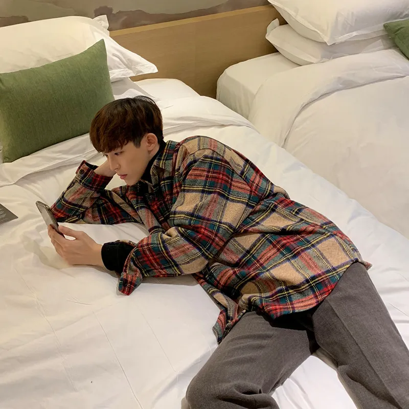Stay Stylish and Warm with the Trendy Cool Coat Long-Sleeved Plaid Shirt