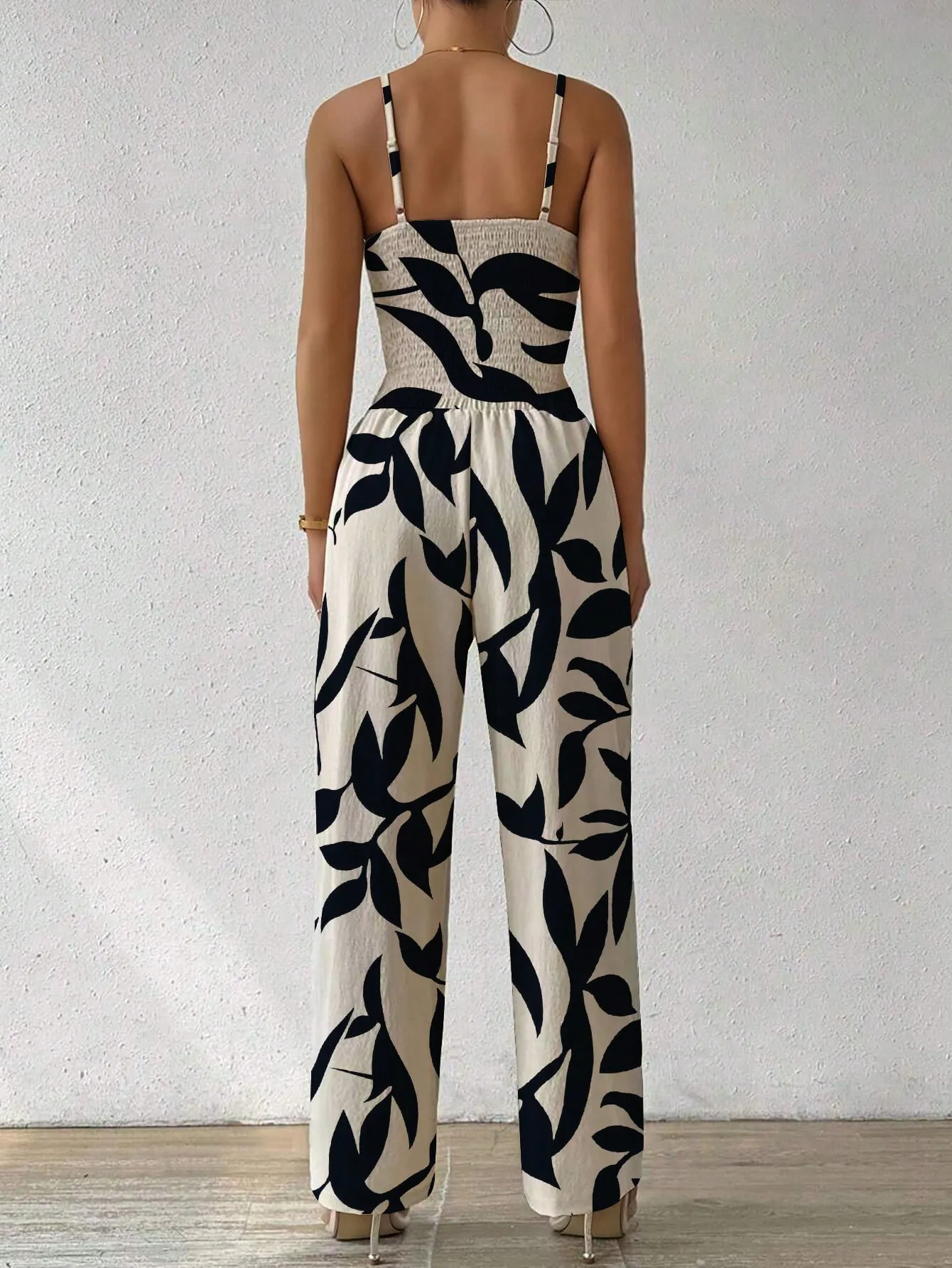 Tropical Floral Print: The standout feature of this jumpsuit is its eye-catching tropical floral pattern, featuring bright,