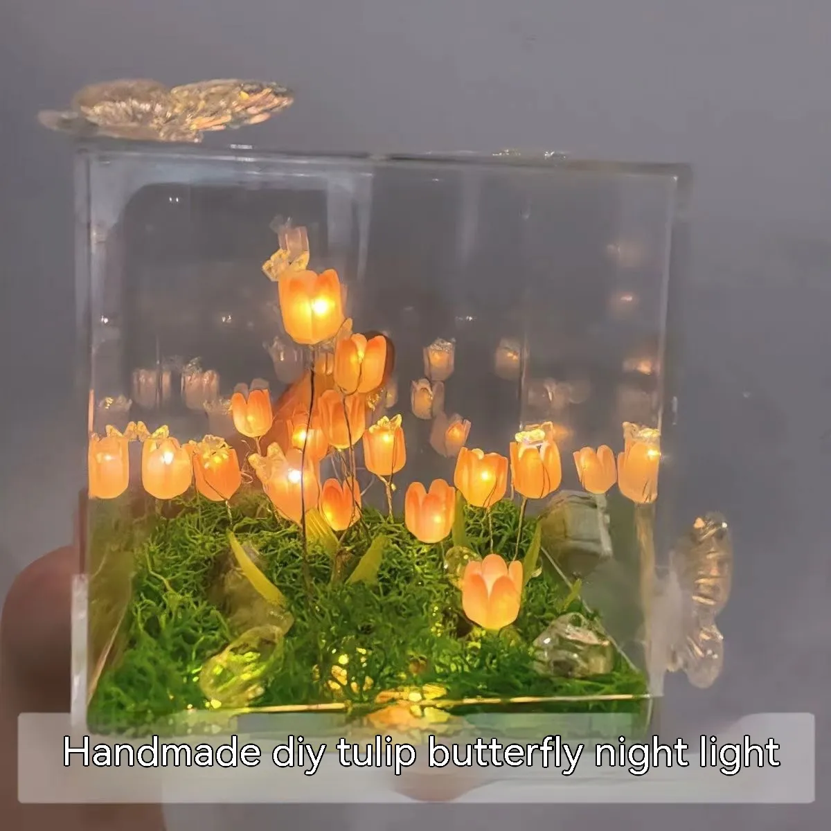 Light color: Mirror pink Rubik's Cube Tulip small night lamp, Mirror Blue Rubik's Cube Tulip small night lamp, mirror purple Rubik's Cube