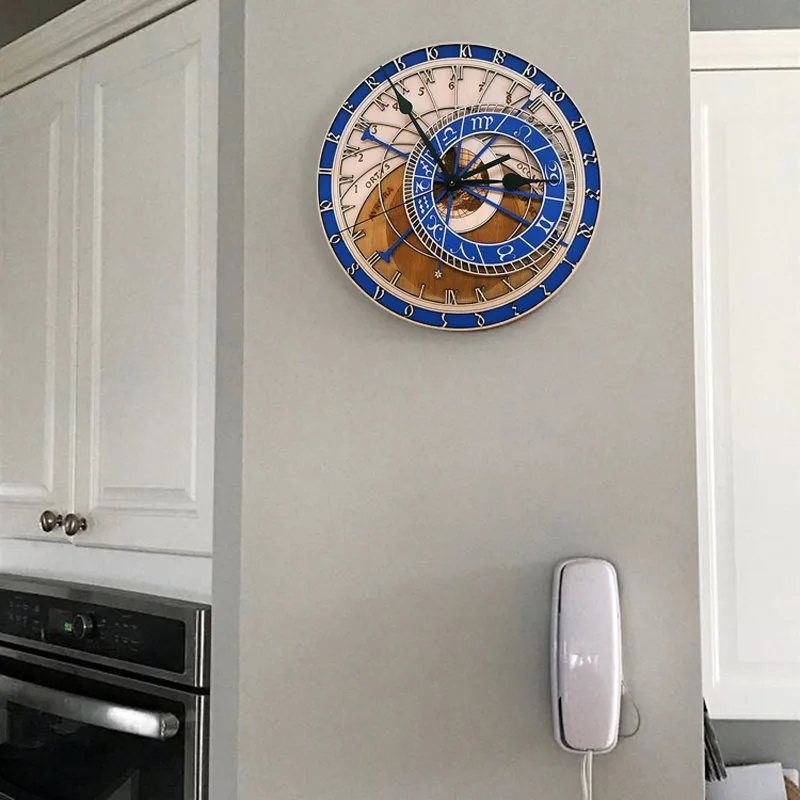 Prague Astronomical Clock Wooden Living Room Clock Wall Clock Quartz 12 Constellation Big Silence Wall Clock