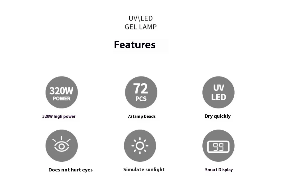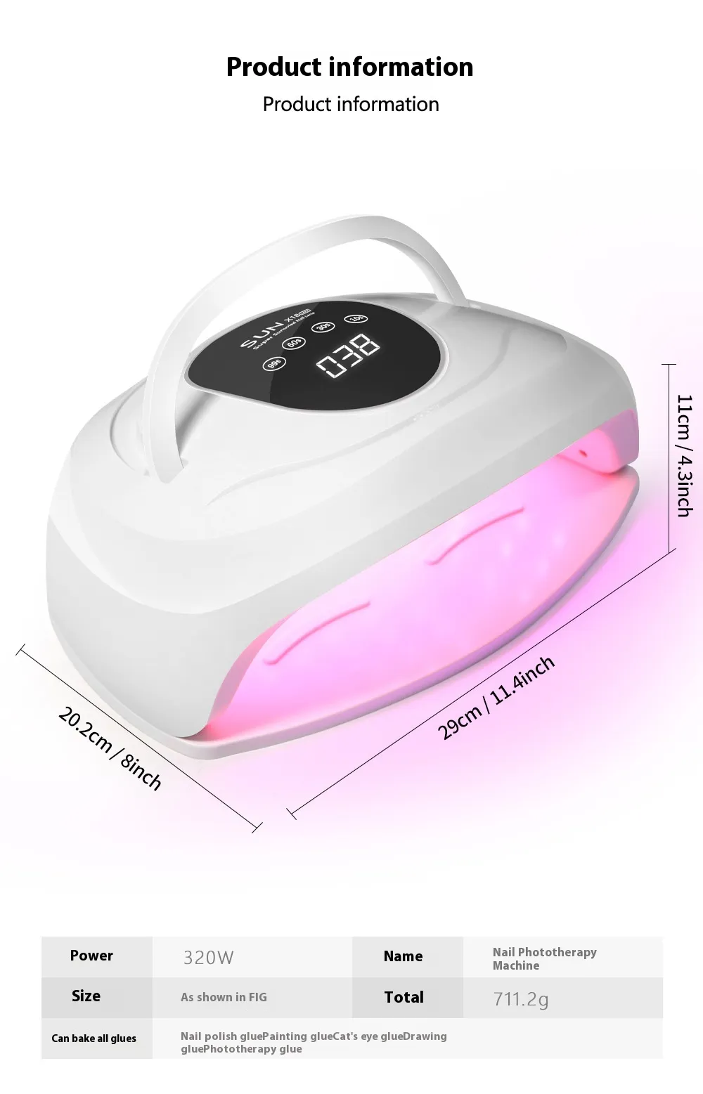 High Power 320W Output: This lamp provides a strong 320W of power, ensuring quick and even curing of your gel nails,