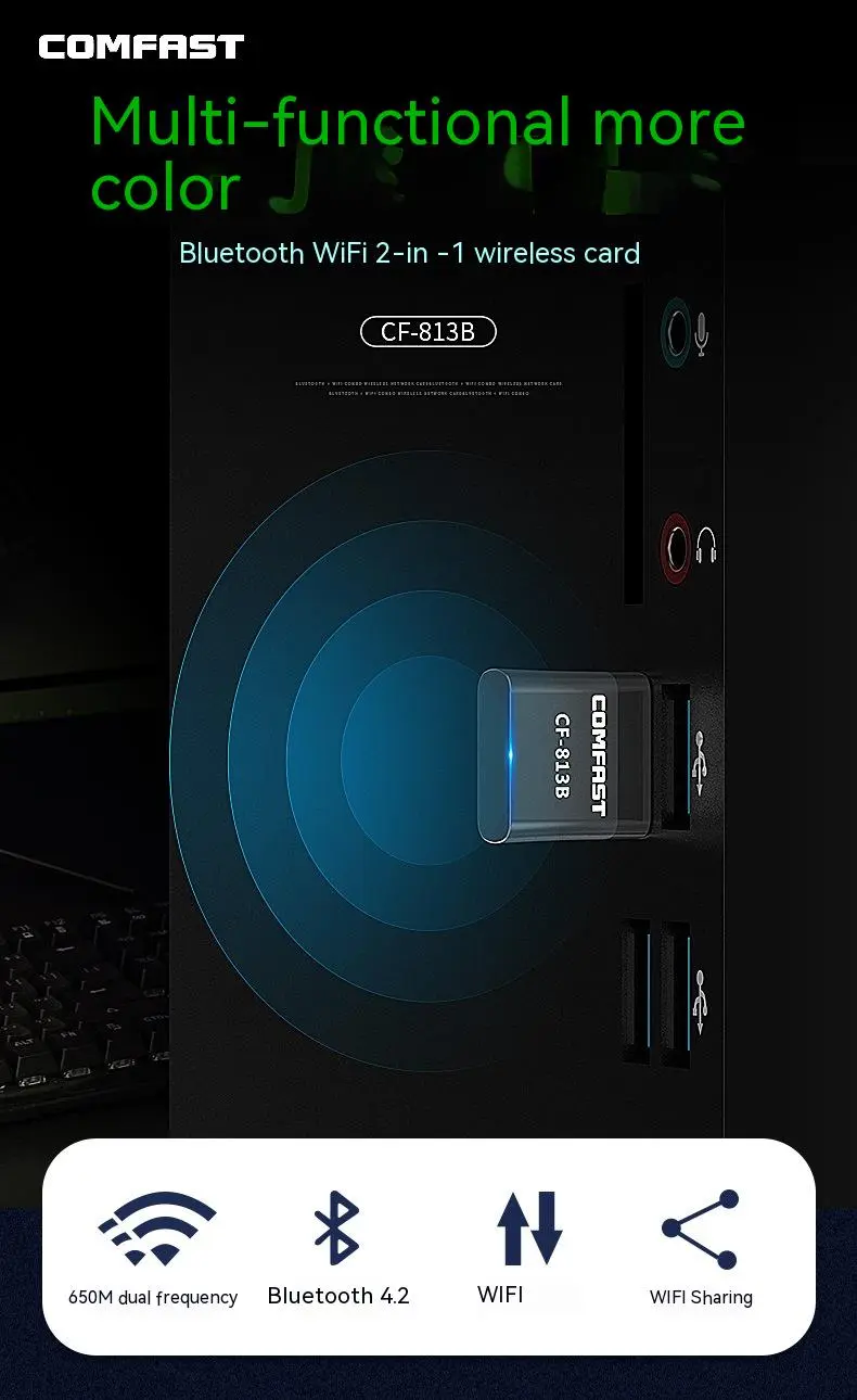 The Two-in-one Network Card Mini Bluetooth Adapter Dual Band AP is the ultimate solution for anyone looking to enhance their device's connectivity. With its dual-band support, compact design, and combined Wi-Fi and Bluetooth functionality, this adapter provides seamless wireless experience for both data transfer and internet access. Whether you're working from home, gaming, or enjoying multimedia streaming, this adapter ensures fast, reliable connections across multiple devices.