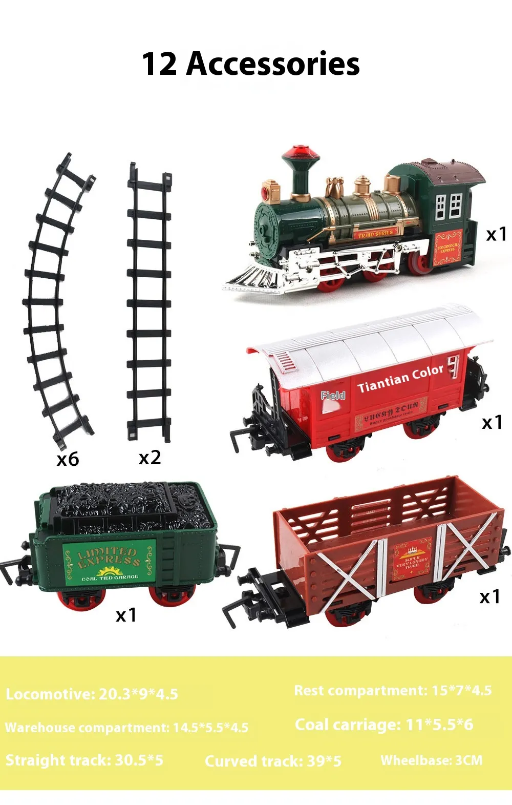 The Electric Rail Car Children's Toy Simulation Train comes with a complete track system that is easy to set up and can be customized to create different layouts. The track pieces are designed to snap together quickly and securely, so your child can easily build their own train route.The track design often includes features like curves, straightaways, and crossovers, providing endless opportunities for your child to create unique track arrangements. This promotes spatial awareness and problem-solving as your child learns to plan and design different routes for the train to follow.Some versions of the train set also allow for additional track pieces to be purchased separately, enabling the creation of even larger and more complex train layouts as your child’s skills and creativity grow.
