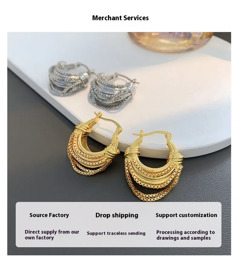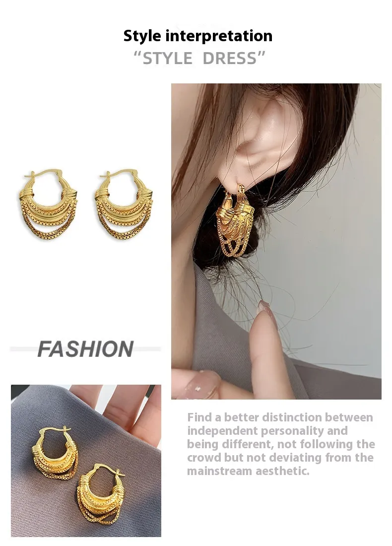 U-shaped Chain Brass Plated 18K Real Gold Earrings