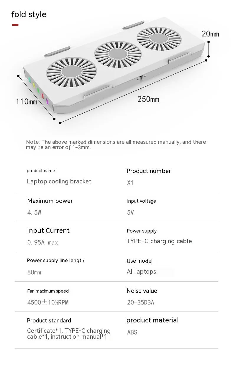 - USB-Powered Operation: Powered via a USB connection, this cooling pad is easy to set up and use with no external power source required. The built-in USB hub allows you to connect additional devices.