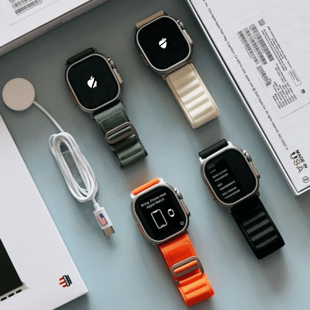 Ultra Watch 49mm: Larger, brighter display showcasing detailed health metrics and dials.