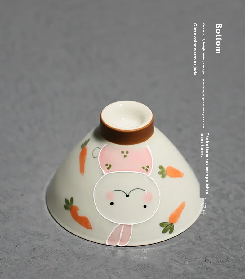 Underglaze Porcelain Hand-Painted Rabbit Bamboo-Hat Type Cup