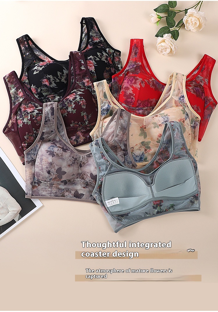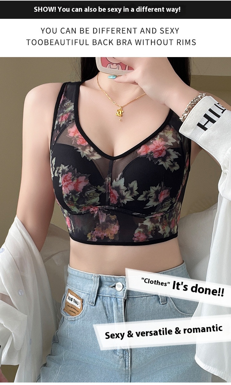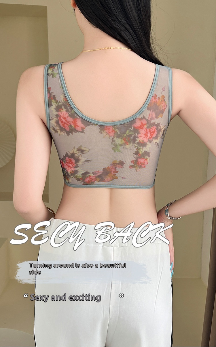 Underwear One-piece Fixed Cup Without Steel Ring Printing Vest Bra