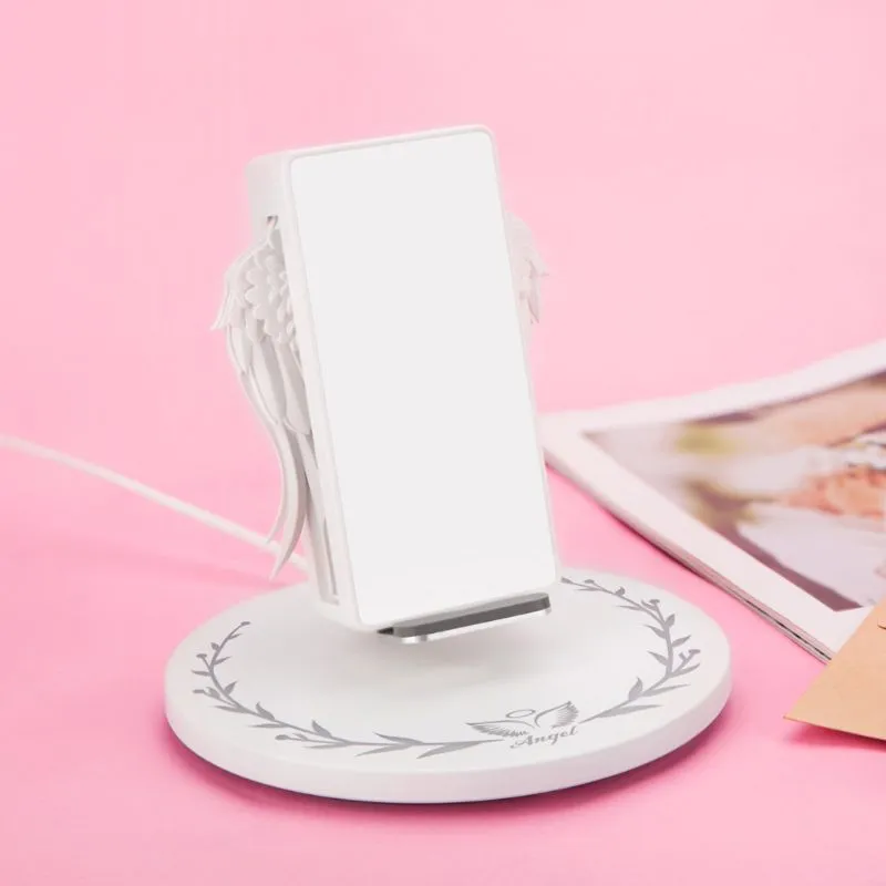The wireless charger has a special and extraordinary design. When you put the phone on, the angel's wings will unfold, and the base will