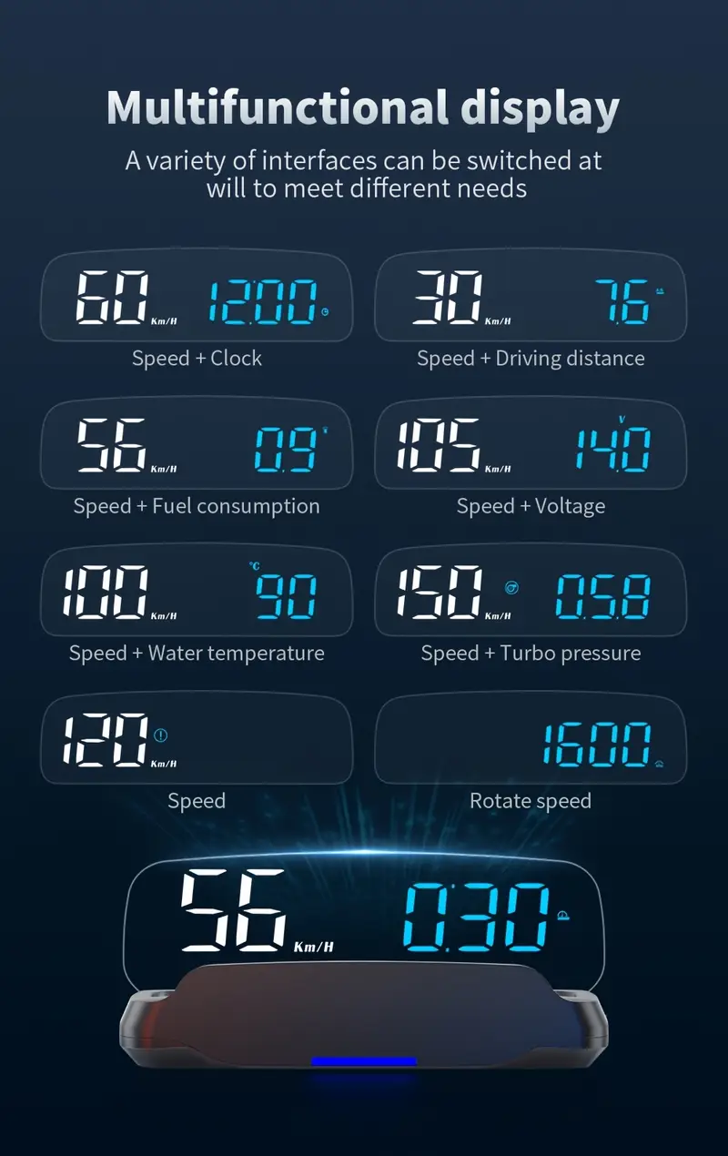 Upgraded 17.78cm OBD Head-Up Display for Cars