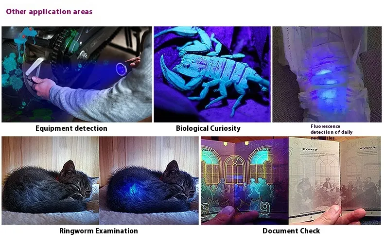 Beyond pet stains, this UV flashlight is also effective for identifying insect activity. It helps reveal pests like bed bugs, scorpions, fleas, and other insects that leave trace evidence in your home. The flashlight can be used to monitor areas that might be harboring pests or to spot contaminated areas during epidemic prevention efforts.