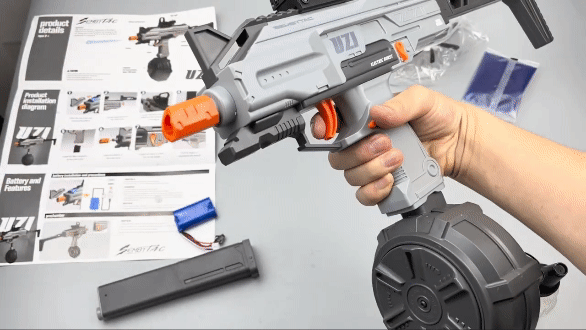 What is Gel Ball Launcher?Gel Ball Launcher is a superior and safe alternative to airsoft, Nerf, super soakers, and paintball because of higher magazine capacity, full-auto fire, long usage time. Comparing to airsoft which uses BBs, Gel Ball Launchers use