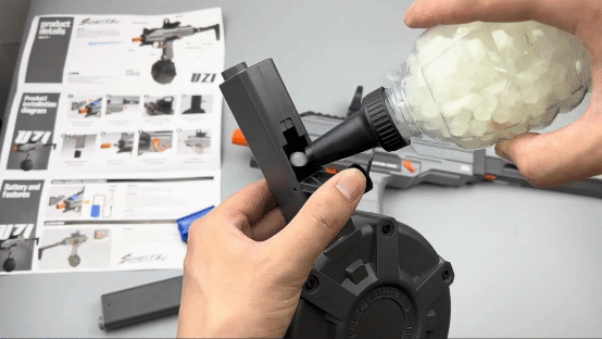 gel bullets which is filled with water, it provides similar performance in terms of range and accuracy comparing to BBs, but is much more safer and children-friendly.