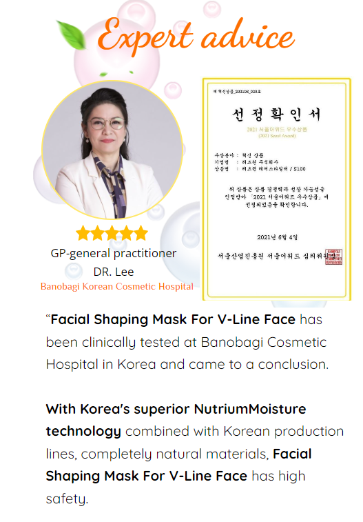 “Facial Shaping Mask For V-Line Face has been clinically tested at Banobagi Cosmetic Hospital in Korea and came to a
