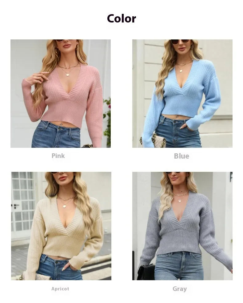 With its batwing sleeves and V-neck design, this knitted sweater exudes a relaxed and chic vibe, making it a must-have addition to any fashion-forward woman's wardrobe.