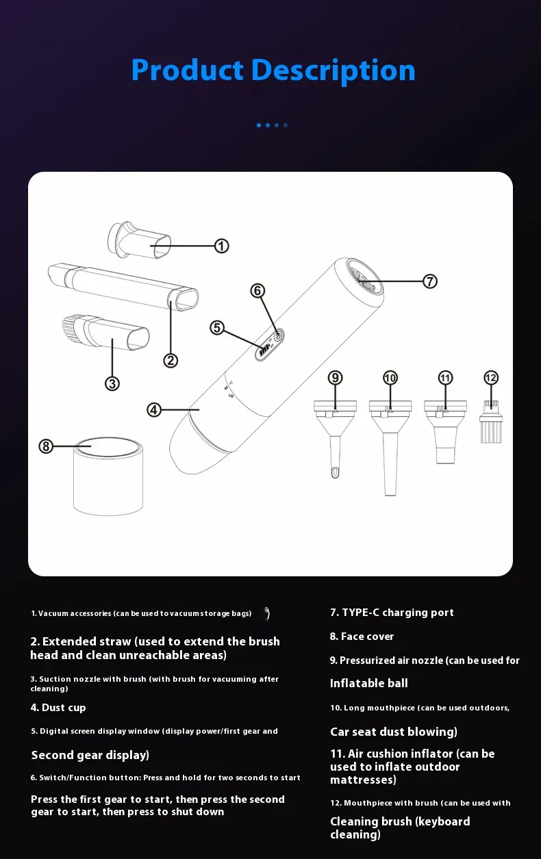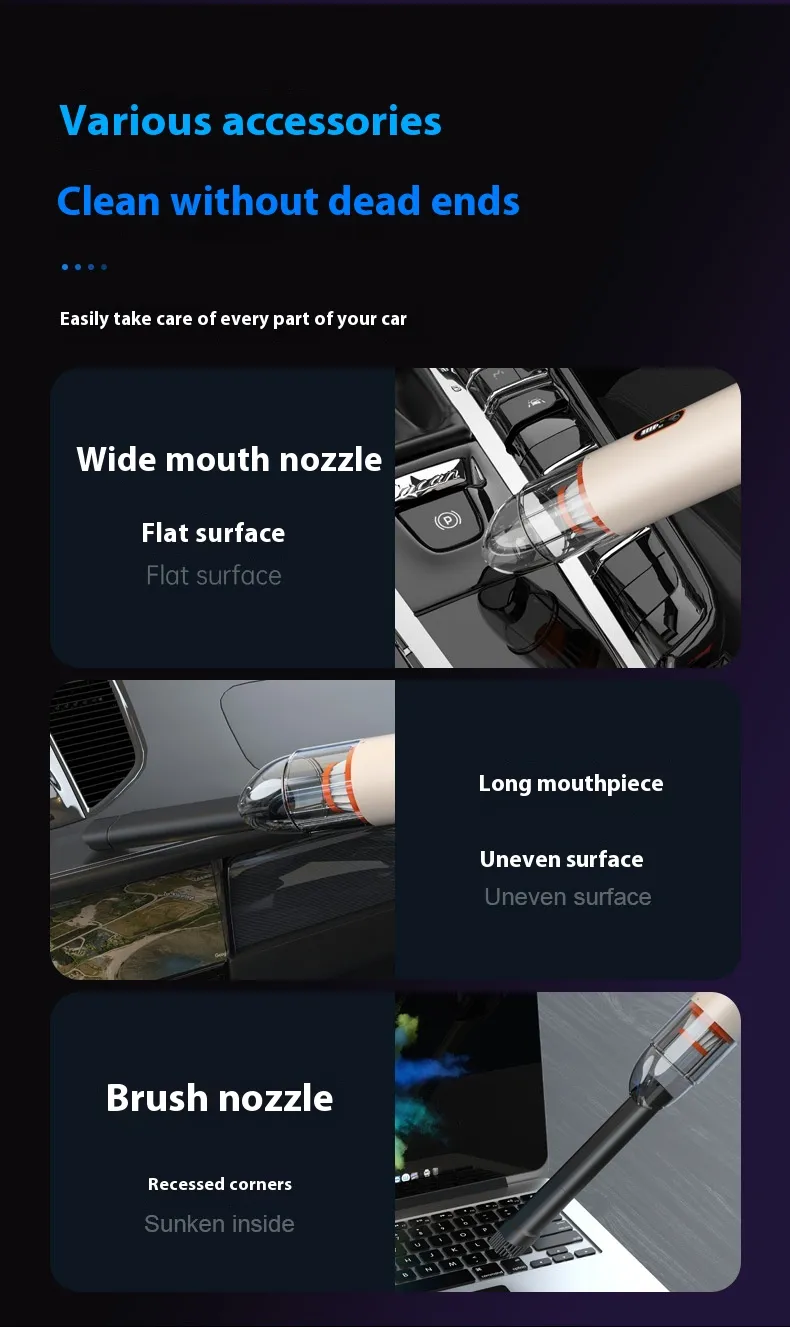 The V22S Wireless Charging Portable Handheld Vacuum Cleaner is the ultimate cleaning companion for your home and vehicle. With powerful suction, a wet and dry cleaning system, and convenient wireless charging, this vacuum combines efficiency, portability, and modern design. Whether you're tackling crumbs, spills, or deep-seated dirt, the V22S makes cleaning effortless and efficient.