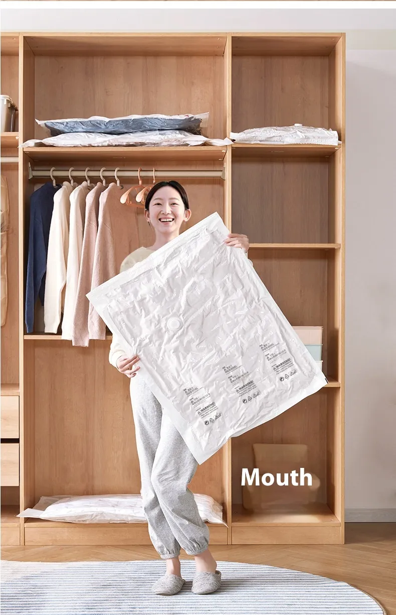 Space-Saving: Vacuum bags compress clothes, towels, bedding, and other soft items, allowing you to fit more into your
