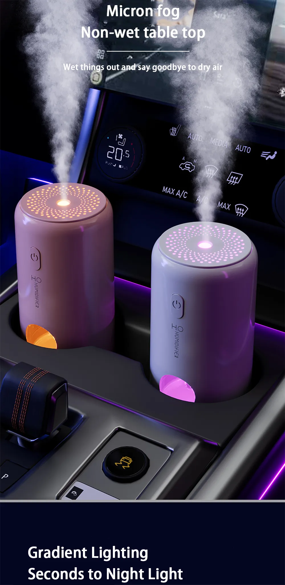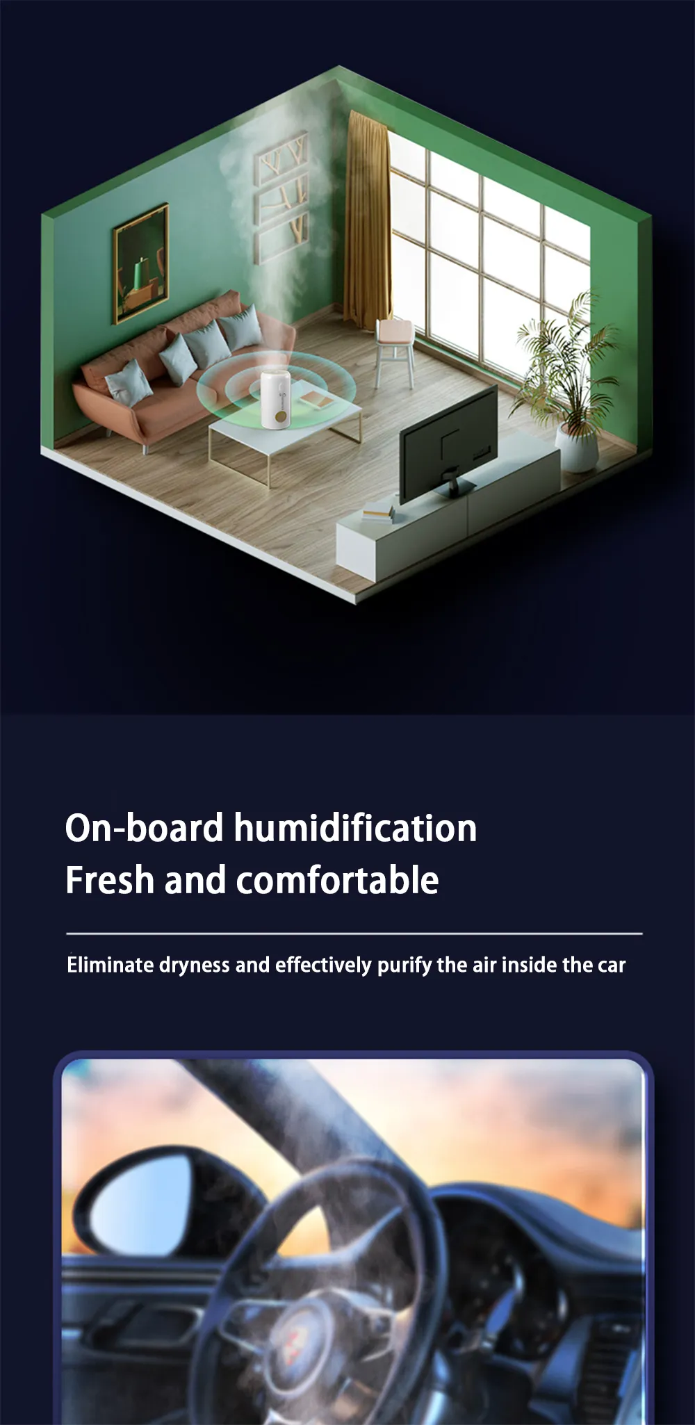 Wireless Design: The vehicle-mounted humidifier is completely wireless, offering ease of use without the need for cables or
