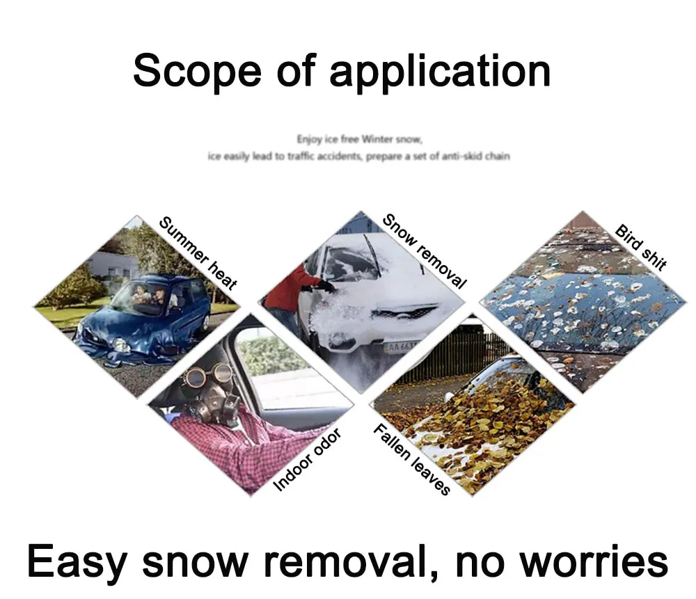 protects your car from rain, snow, dust, and dirt. It keeps your vehicle clean and safe from environmental hazards.