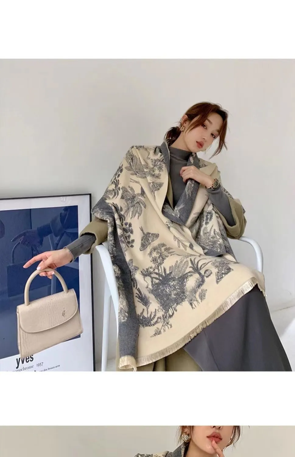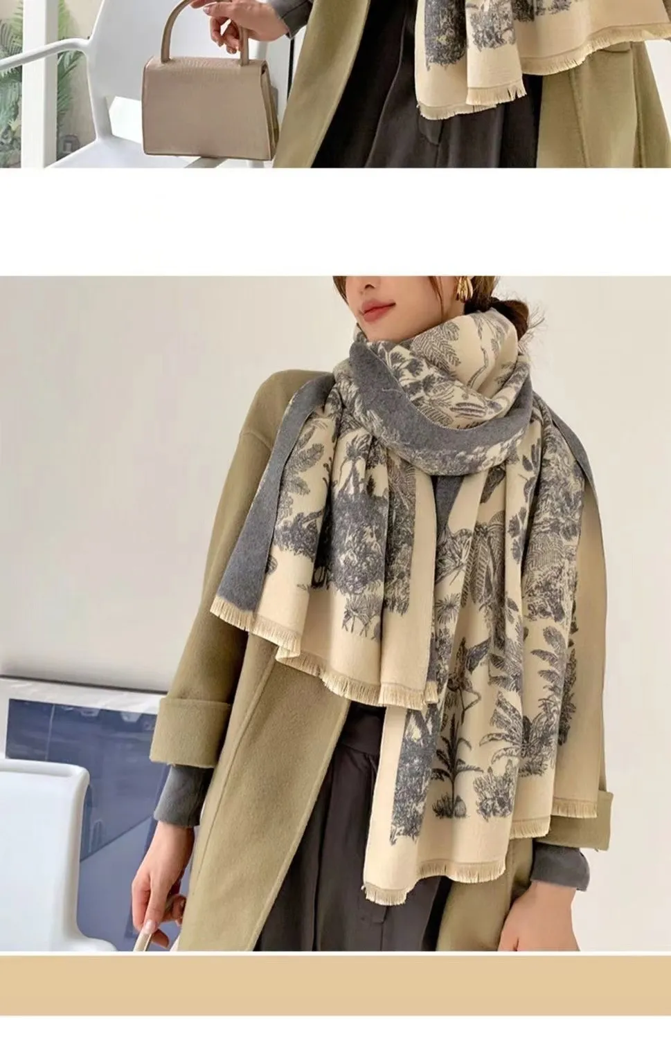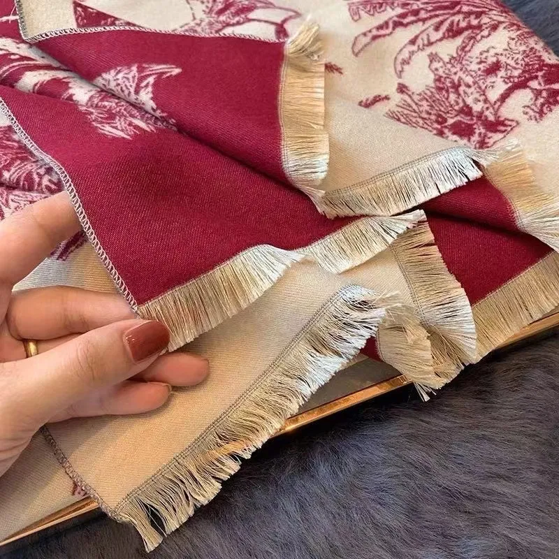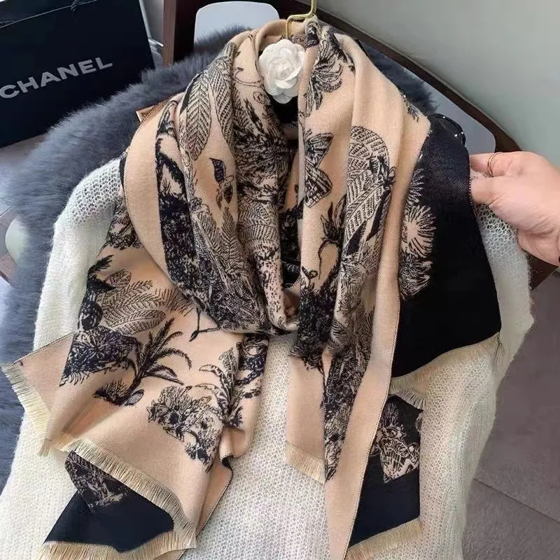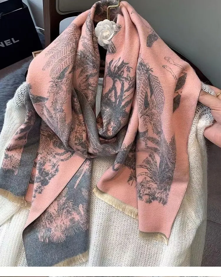 Versatile Cashmere-like Double-sided Tropical Rainforest Pattern Thickened Warm New Scarf For Women
